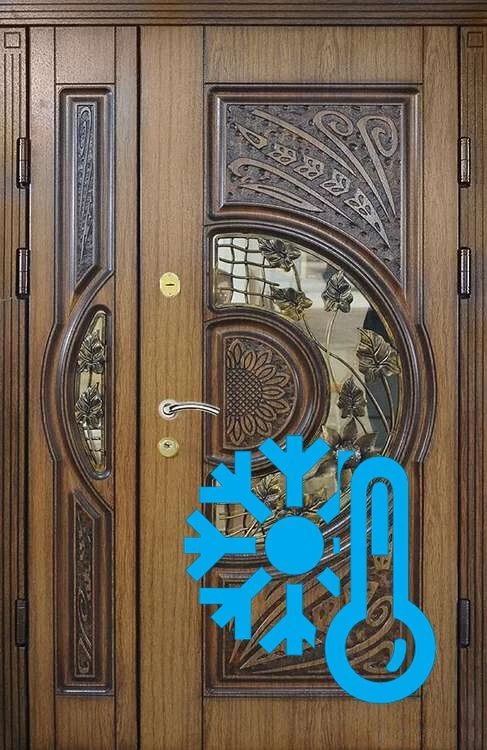С внешней стороны такую дверь можно отделать как порошково-полимерным покрытием без затей, так и массивом, натуральным шпоном, атмосферостойким МДФ. Терморазрыв применяется при изготовлении парадных дверей, с витражом, ковкой и стеклом. Есть еще одна область применения дверей с терморазрывом. Они, очень хорошо поглощают шум. Поэтому такие двери хорошо зарекомендовали себя в качестве дверей для квартир, находящихся на первом этаже, или рядом с лифтами, то есть в шумных местах.